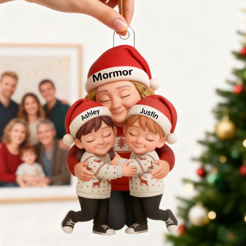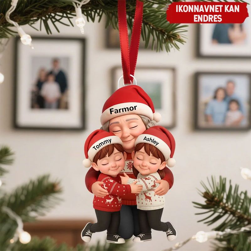 Bestemor klemmer barnebarn - Personlig akrylornament - Hjertevarmende julegave til bestemor, barnebarn